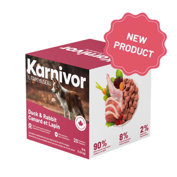 Duck and rabbit create a gentle protein duo that’s perfect for sensitive dogs — low-allergen, easy to digest, and naturally rich in nutrients. Rabbit — with its meat, organ meat, and finely ground bones — provides essential nutrients to support skin health, vitality, and digestive comfort. Duck, meanwhile, helps maintain a healthy coat and provides steady daily energy.