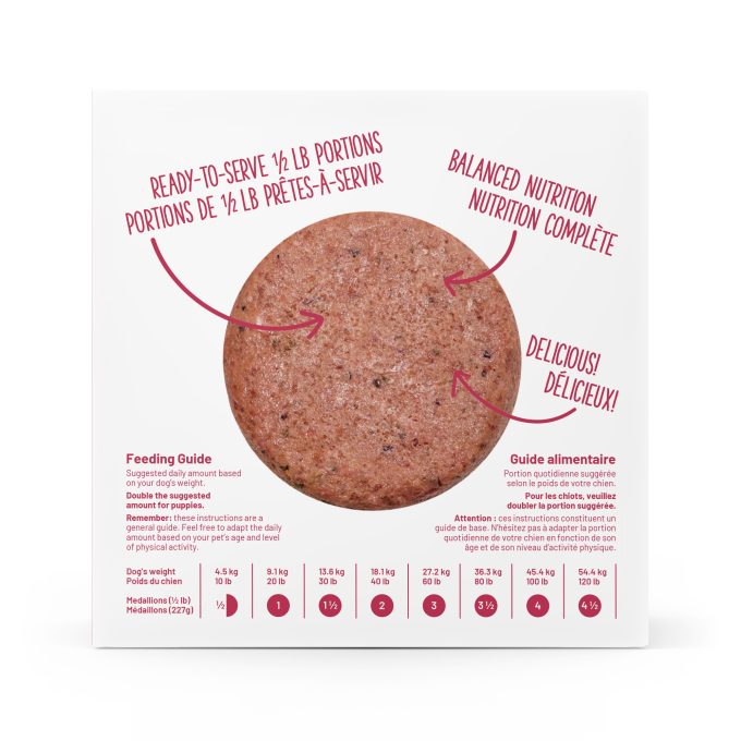 Complete and balanced meals, perfectly portioned in 1/2 lb medallions — ready to serve with no additional preparation needed. Designed to meet the nutritional needs of all life stages.